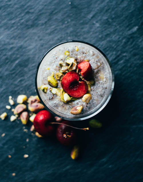 Whilst the pears are cooking prepare the cashew cream by draining and rinsing your soaked cashews. Place them in a blender and add you plant milk of choice, maple syrup and vanilla powder. Blend until smooth. Give it a taste and assess wether you would like it sweeter or you might want to add more vanilla or even milk to make it less thick – the choice is yours. Do however remember that the pears will be nice and sweet.